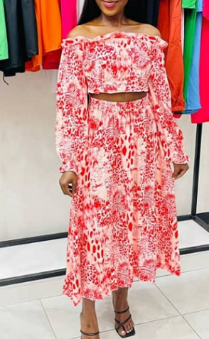Women's 2-piece suit, top and long skirt