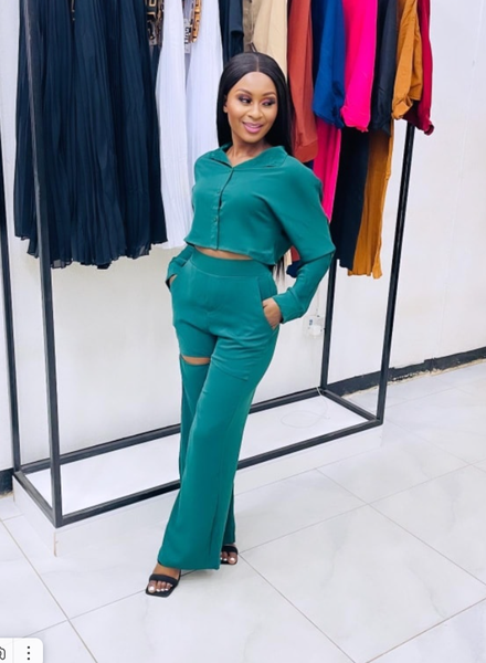 Women's suit bright green long-sleeved shirt and trousers S-3xl
