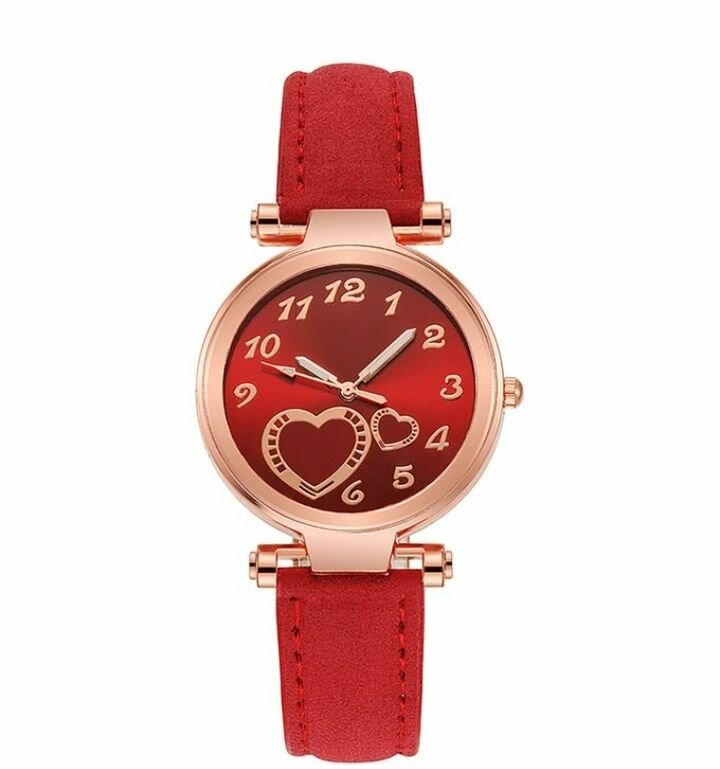 Women Watch Heart Dial Plate Anti-Scratch Faux Leather-Red