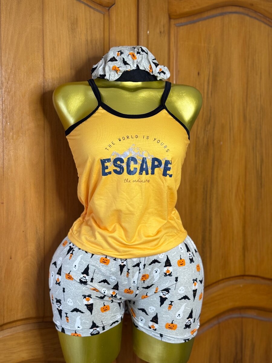 Celebrate the spooky season with this comfy women's Halloween pajama set. Featuring a playful pumpkin and witch pattern with a vibrant orange top, this set is perfect for cozy nights in. Made with soft and breathable fabric, it ensures a restful sleep. Ideal for Halloween parties or casual lounging, this set is a must-have for holiday enthusiasts.