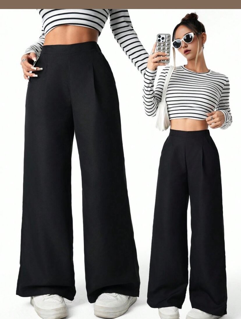 Elevate your style with these sleek Women's High-Waist Wide-Leg Pants. Featuring a flattering high-rise waist and chic wide-leg design, they're perfect for both casual and formal occasions. Pair with a crop top or blouse for a modern, sophisticated look. Made from quality fabric for comfort and durability. Ideal for fashion-forward women who love versatile wardrobe staples.