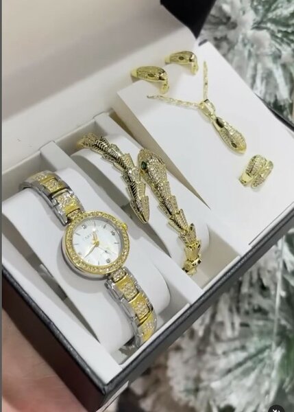 ✅Включает: часы, браслет, подвеску, сережки и кольцо. 🍭чупачупс в подарок🎁 ⚜️Гарантия 1год ⚜️ Цены могут меняться ⚜️Фирменная коробка в комплекте ⚜️ Доставка по всему миру