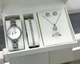 ✅Включает: часы, браслет, подвеску, сережки и кольцо. 🍭чупачупс в подарок🎁 ⚜️Гарантия 1год ⚜️ Цены могут меняться ⚜️Фирменная коробка в комплекте ⚜️ Доставка по всему миру