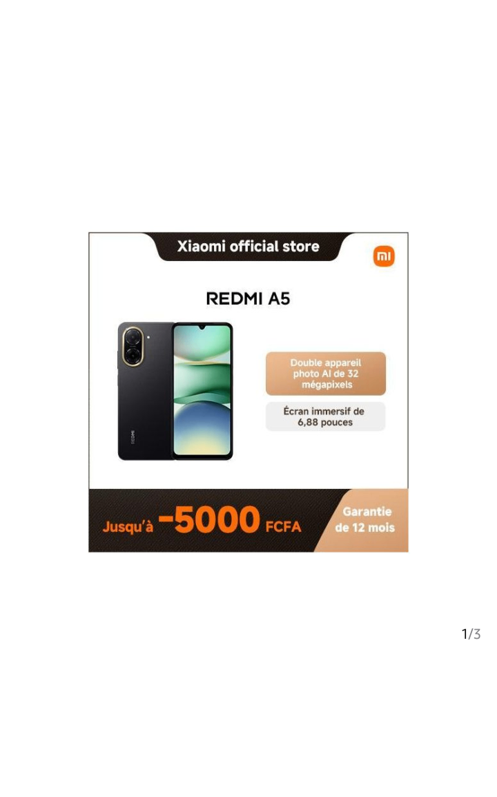 Découvrez le Xiaomi Redmi A5, doté d'une caméra ultra-claire, d'une batterie de 5200mAh et d'un grand écran. Un choix idéal pour les utilisateurs à la recherche de performances et d'autonomie.