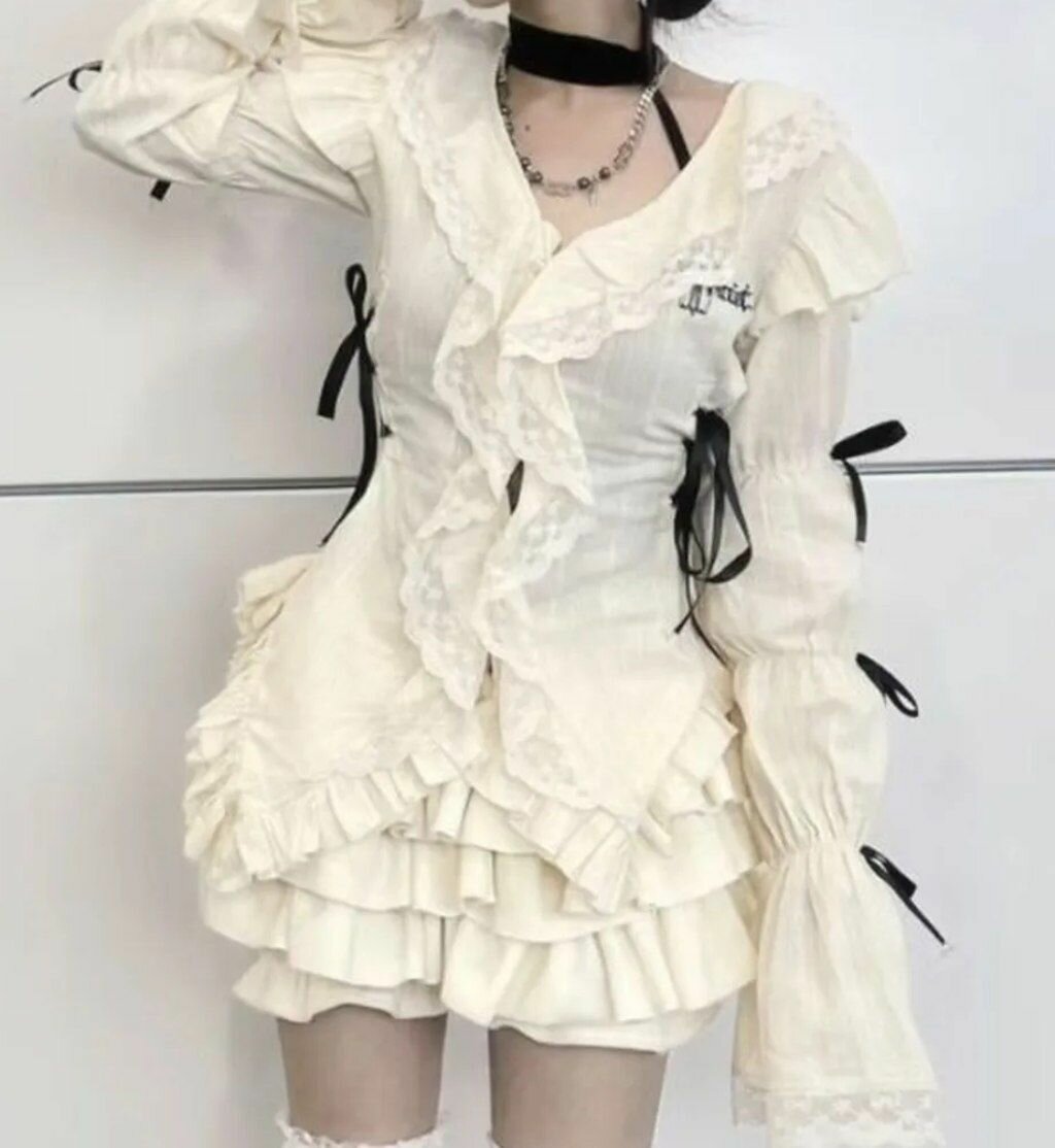 Белая готическая рубашка y2k, подростковая одежда, готический стиль, винтажная одежда