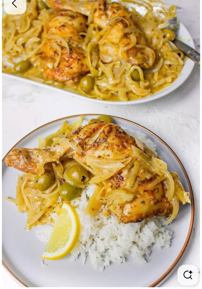 Délicieux poulet rôti aux oignons et olives, accompagné d'une sauce citronnée relevée. Parfait pour un dîner savoureux et réconfortant. Servez avec du riz parfumé aux herbes fraîches. Idéal pour les amateurs de cuisine méditerranéenne.