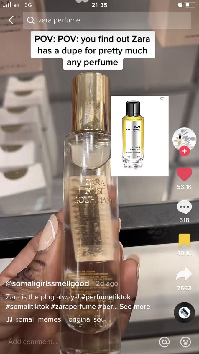 Zara rose gourmand available in 30 ml