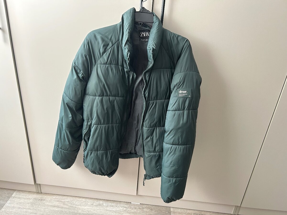 Мужская куртка zara, размер м, состояние хорошее, цвет темно зеленый