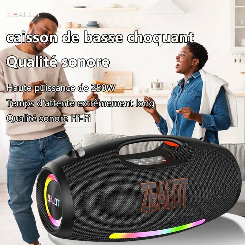 Découvrez l'enceinte portable ZEALOT, offrant une puissance sonore de 250W et une qualité Hi-Fi exceptionnelle. Avec sa batterie de 48000mAh, profitez d'un temps d'utilisation prolongé où que vous soyez. Idéale pour les fêtes, elle crée une ambiance avec ses effets lumineux RGB.