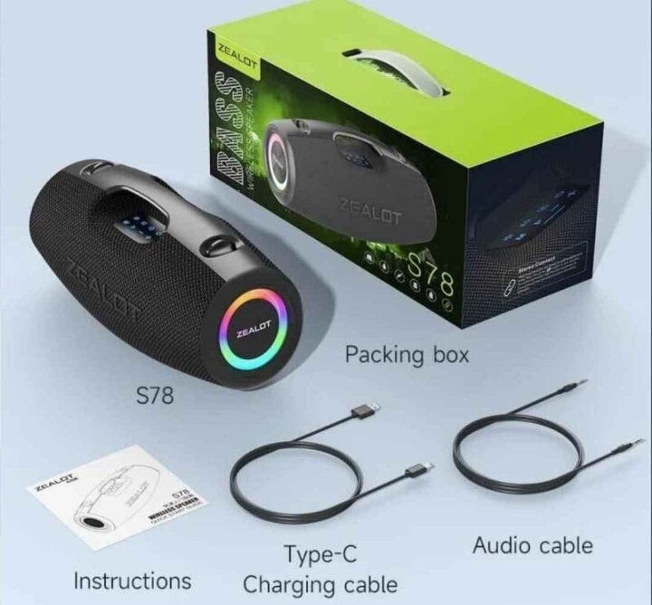 Experience immersive sound with the Zealot S78 Bluetooth speaker. Featuring powerful bass, portable design, and versatile connectivity options including USB, AUX, and TF card slots. Ideal for outdoor parties or any occasion, this speaker ensures top-notch audio quality. Make your gatherings unforgettable with Zealot!