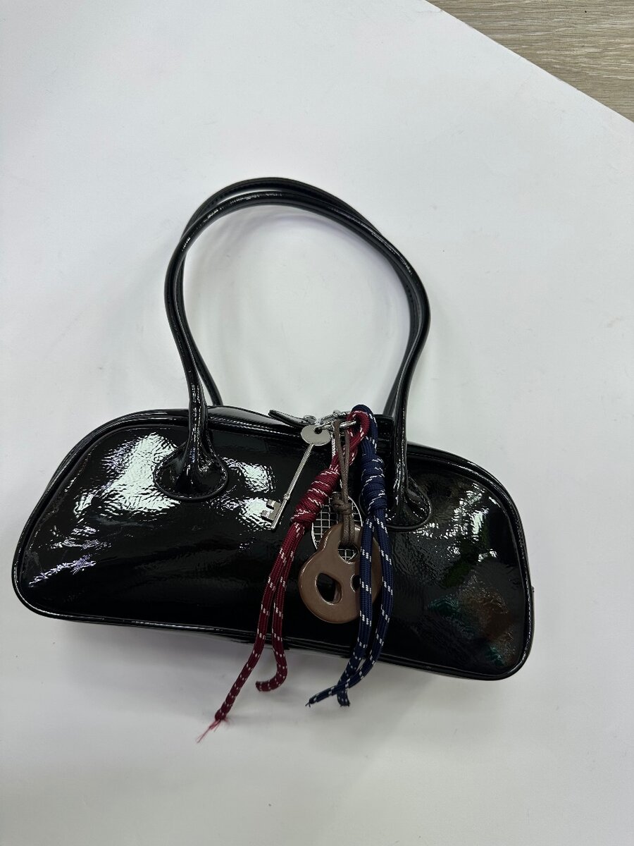 Лакированная черная сумка это воплощение элегантности и современного стиля. Изготовлена из высококачественного лакированного материала, который придает сумке роскошный блеск и изысканный вид. Черный цвет делает её универсальной, идеально подходящей как для вечерних выходов, так и для деловых встреч. Сумка имеет аккуратную форму и металлические фурнитуры, которые добавляют ей утонченности.