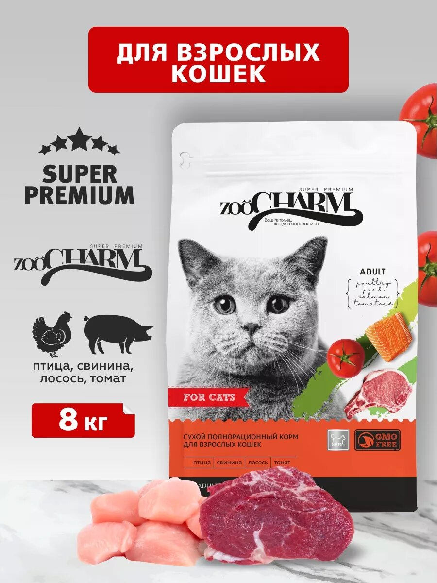 Сухой корм ZOOCHARM содержит высококачественные ингредиенты, включая два вида мяса: курицу и рыбу, которые обеспечивают необходимое количество белка и предоставляют кошке все необходимые питательные вещества.