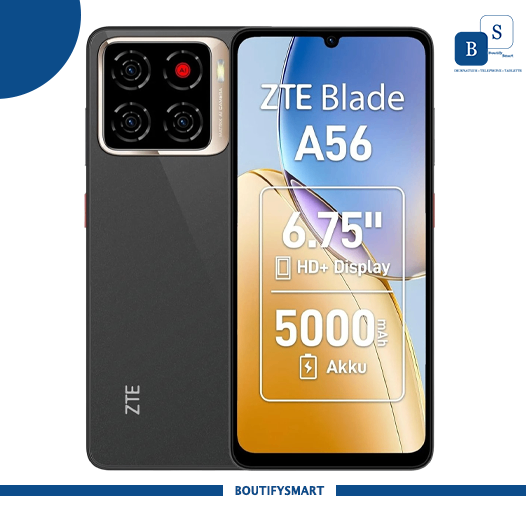 Découvrez le ZTE Blade A56 avec écran HD+ de 6,75 pouces et batterie puissante de 5000 mAh. Idéal pour un usage quotidien avec une caméra arrière haute résolution pour capturer chaque moment. Choix parfait pour les amateurs de technologie et de design élégant.