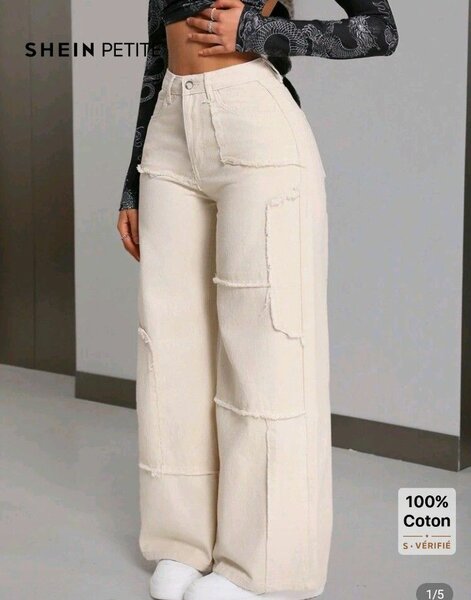 Pantalon large beige femme