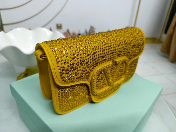 Pochette en cuir jaune cristaux