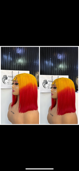 Perruque Bicolore Rouge et Jaune