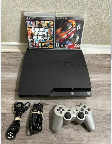 Console PS3 avec manette et jeux vidéo