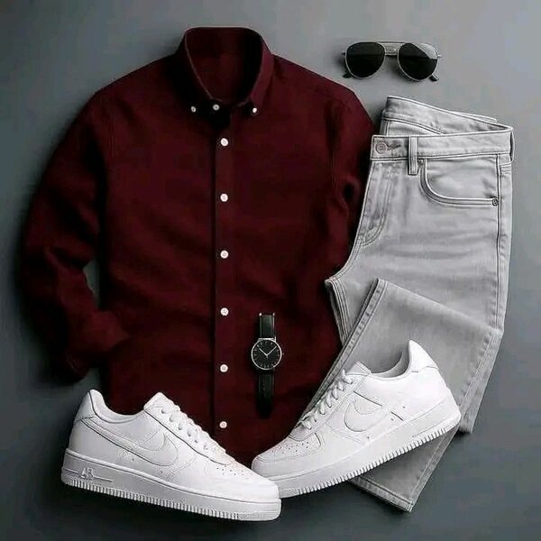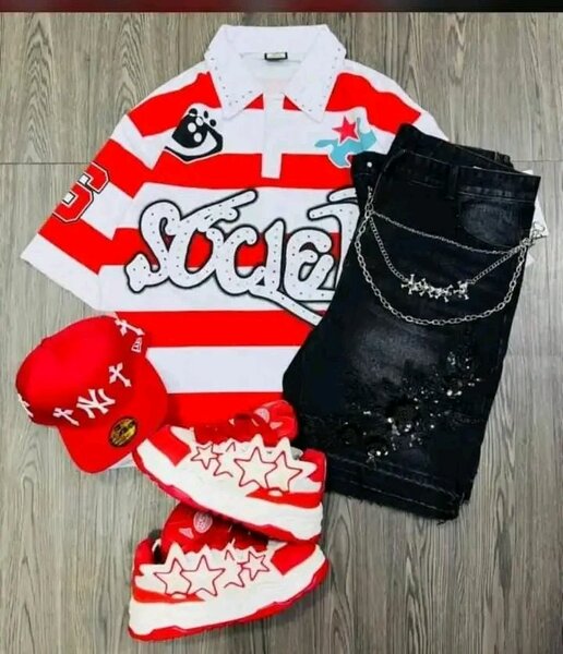 Tenue décontractée rouge et noire