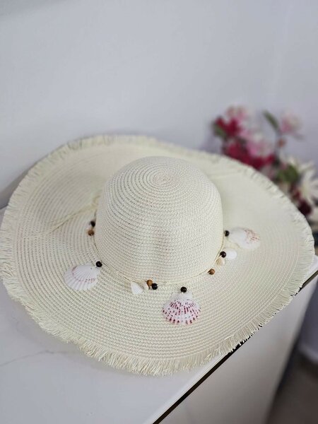 Chapeau d'été en paille coquillages
