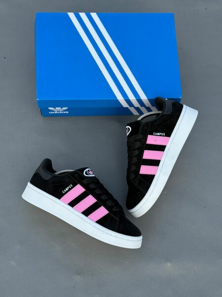 Baskets Campus noires et roses