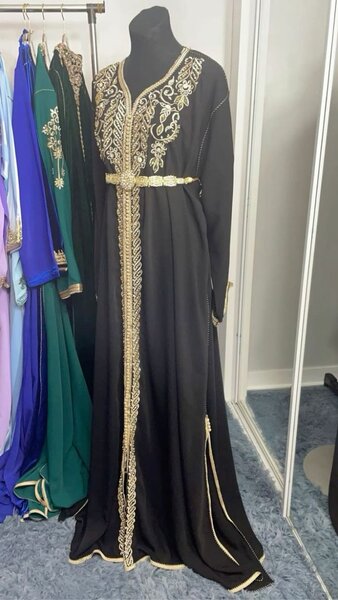 Robe caftan brodé doré