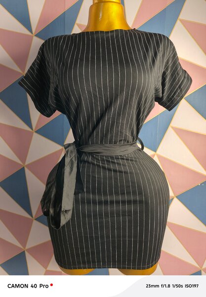 Robe chemise noire rayée
