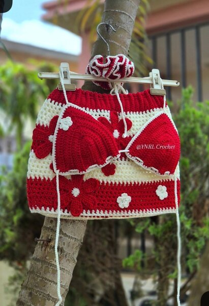 Ensemble bikini crochet rouge et blanc