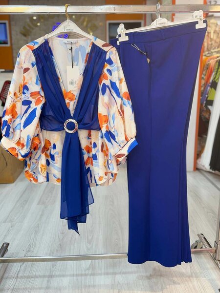Ensemble blouse foral pantalon