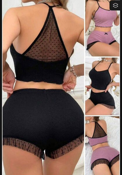 Ensemble pyjama femme - T-shirt 'Sleepall day' et shorts fleuris