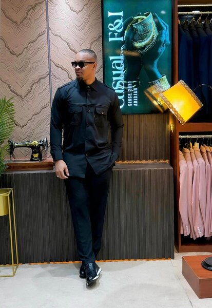 Costume homme, couleur crêpe noir chemise + pantalon Taille : M, L, XL, XXL
